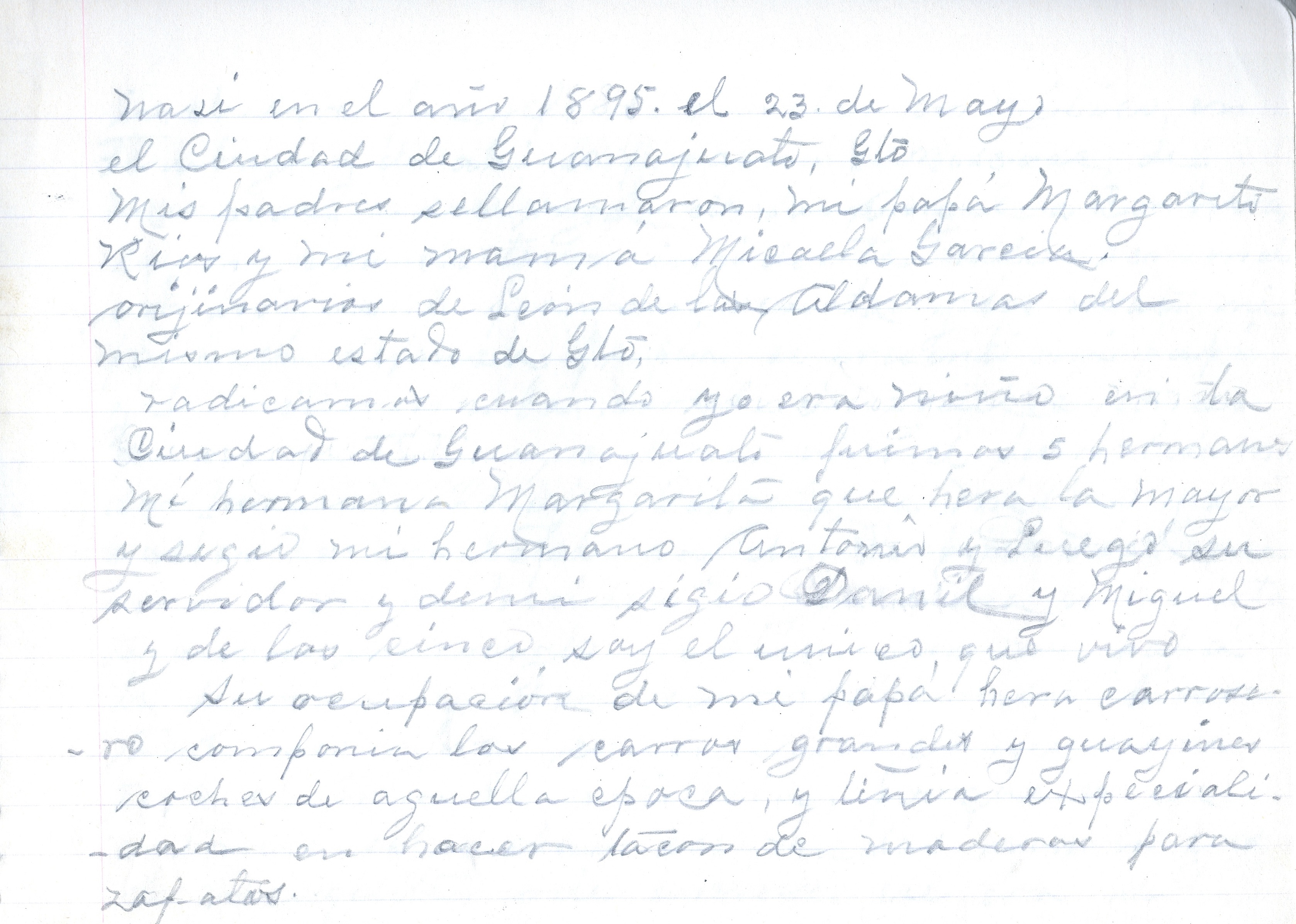 Notas autobiográficas de Arnulfo Hernández Arcos dedicadas a su hija, 1969.
