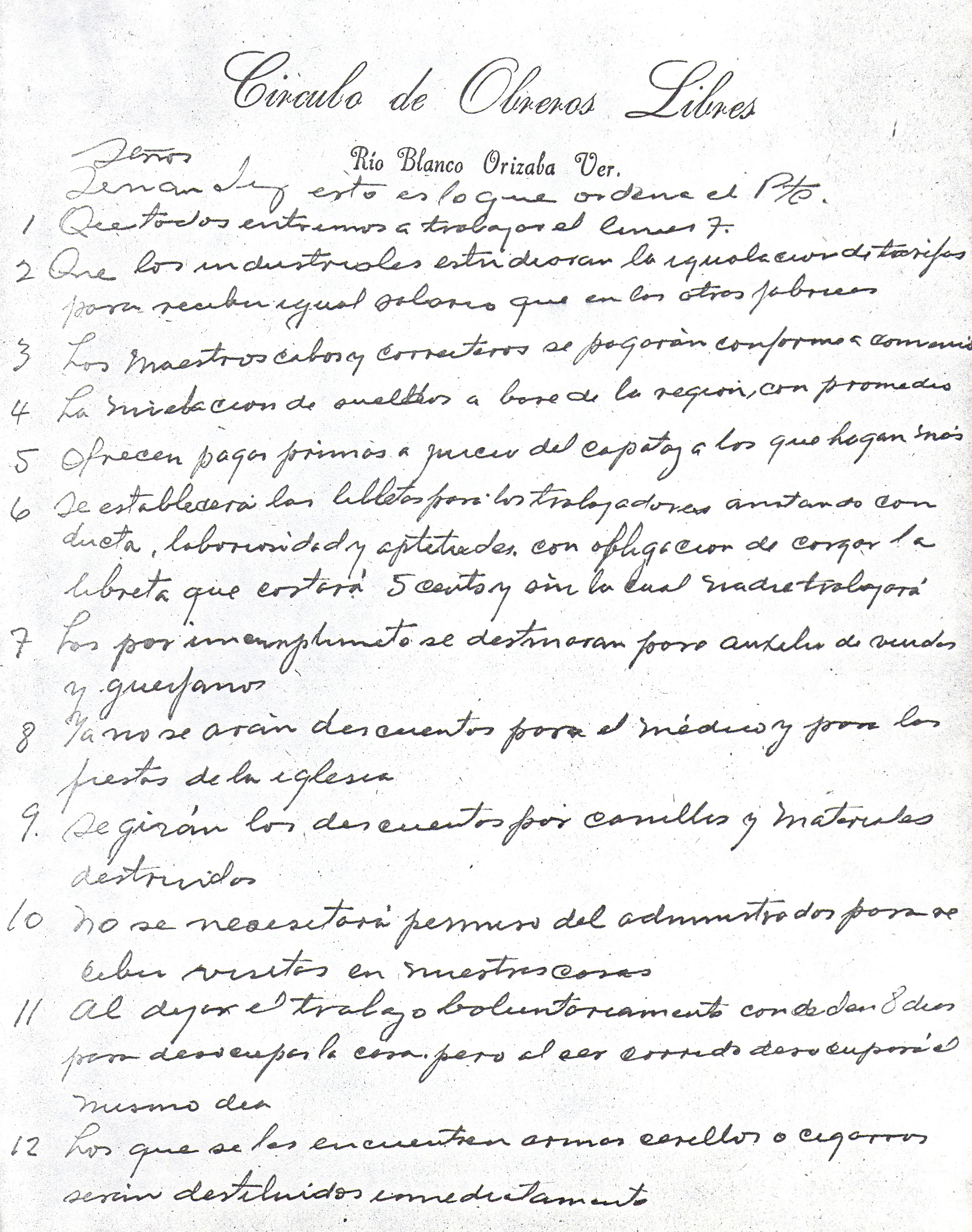 Carta de Celerino T. a Guillermo Fernández Flores exponiendo las exigencias de Porfirio Díaz ante la huelga de Río Blanco, Orizaba, Ver., 4 de enero [1907]